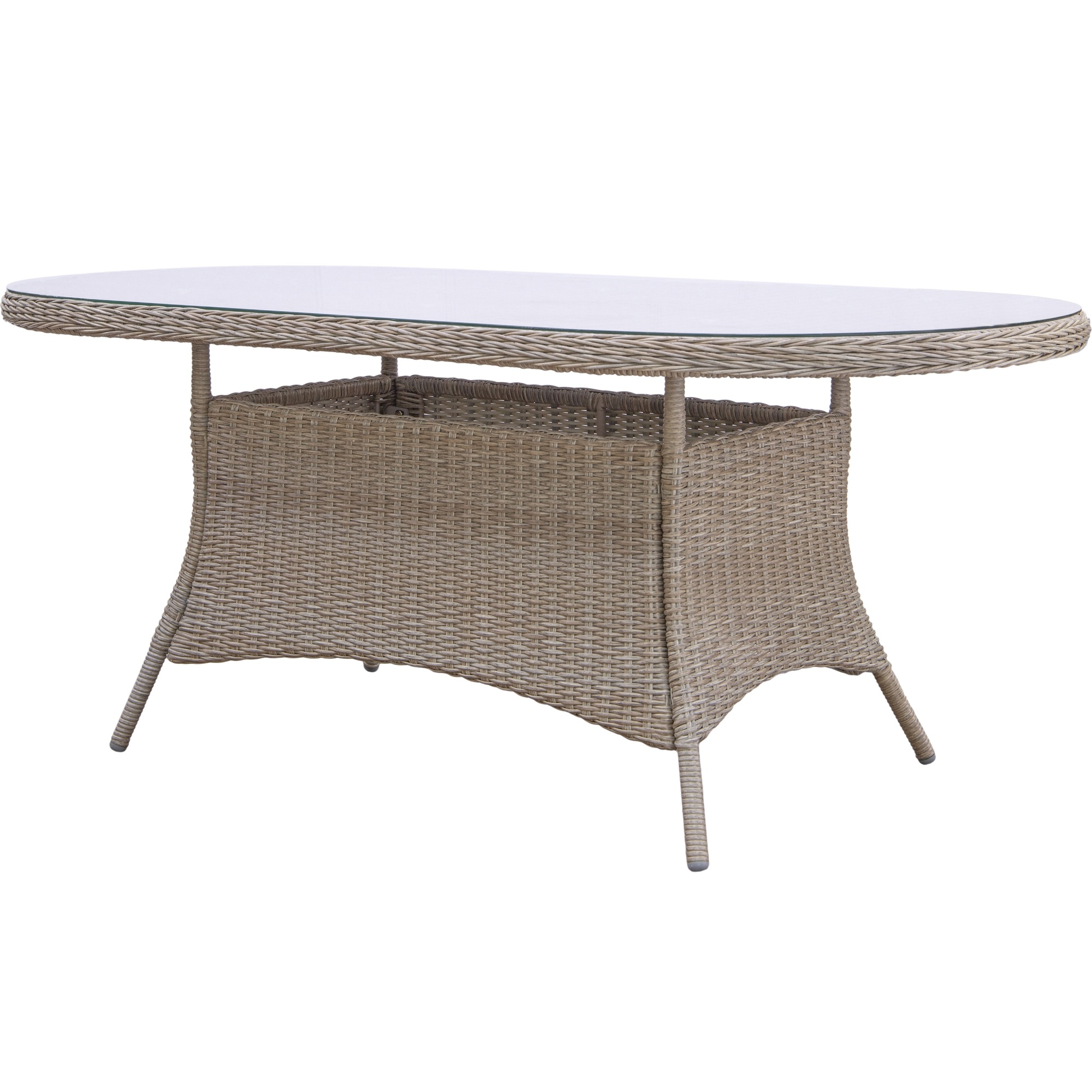 Skapa en trivsam plats för långa måltider och avkoppling utomhus med den här matgruppen i naturfärgad konstrotting. Bordet från Menton-serien har en bordsskiva i tempererat glas som ger en lättskött yta med plats för sex personer. De tillhörande Mercury-fåtöljerna har en klassisk design med välvd rygg och vadderad vit dyna som ger både stöd och komfort. Perfekt för både uterum och uteplats.