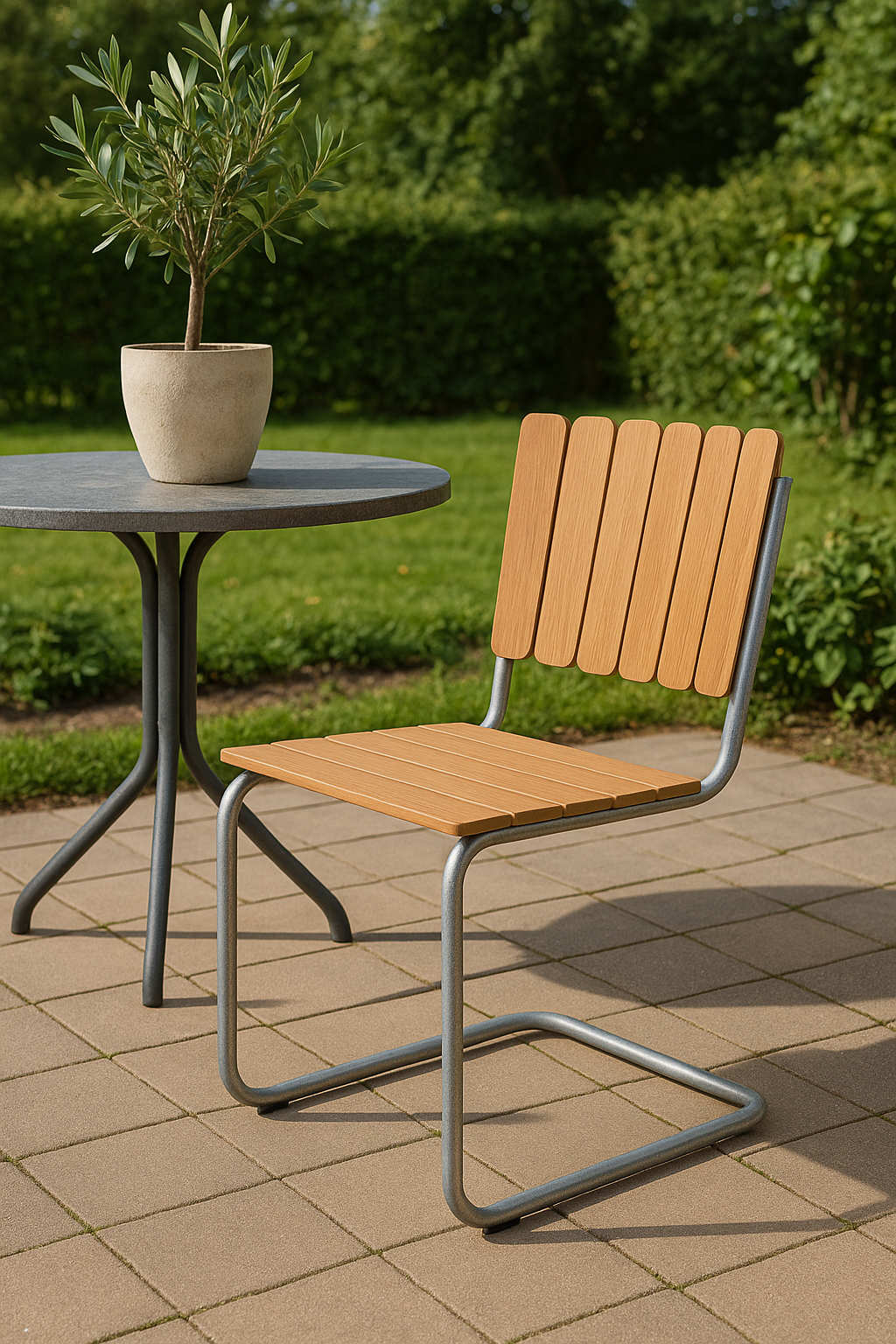 Möllan är en exklusiv serie i skandinavisk klassisk design. Utegruppen är tillverkad i galvaniserat stål med massivt oljat teakträ. Detta gör utegruppen väderbeständig och tålig för att klara uteplatsens miljö.