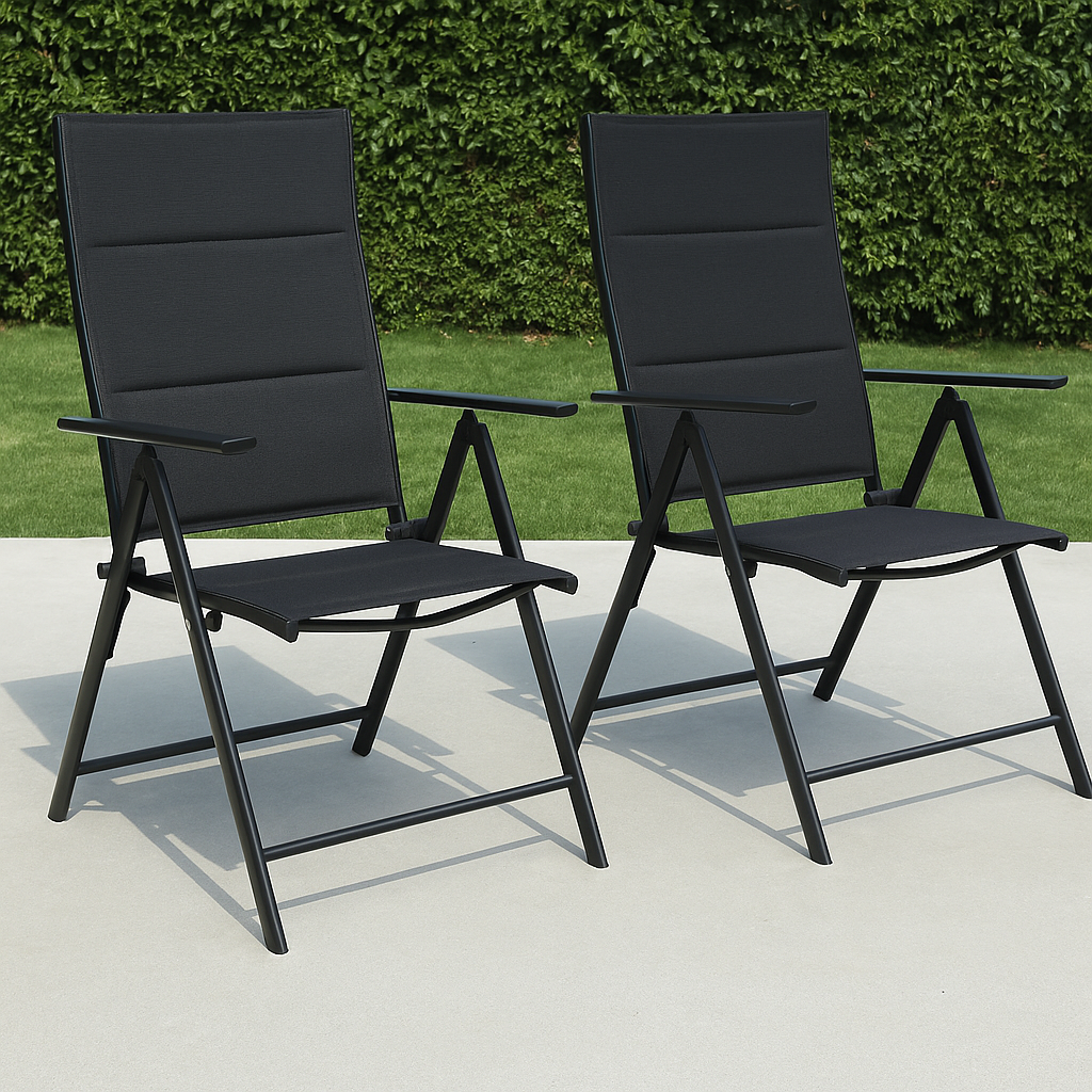 - Sits/rygg: Svart PVC-fri textilene med vaddering i quickdry foam