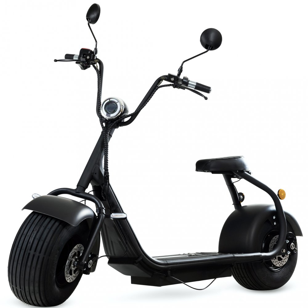 Denna fatscooter kombinerar kraft, design och komfort. Med en borstlös 2000 W motor når den upp till 55 km/h och klarar en användarvikt på hela 200 kg. De extra breda däcken på 22,5 cm ger både stabilitet och en karaktäristisk look.