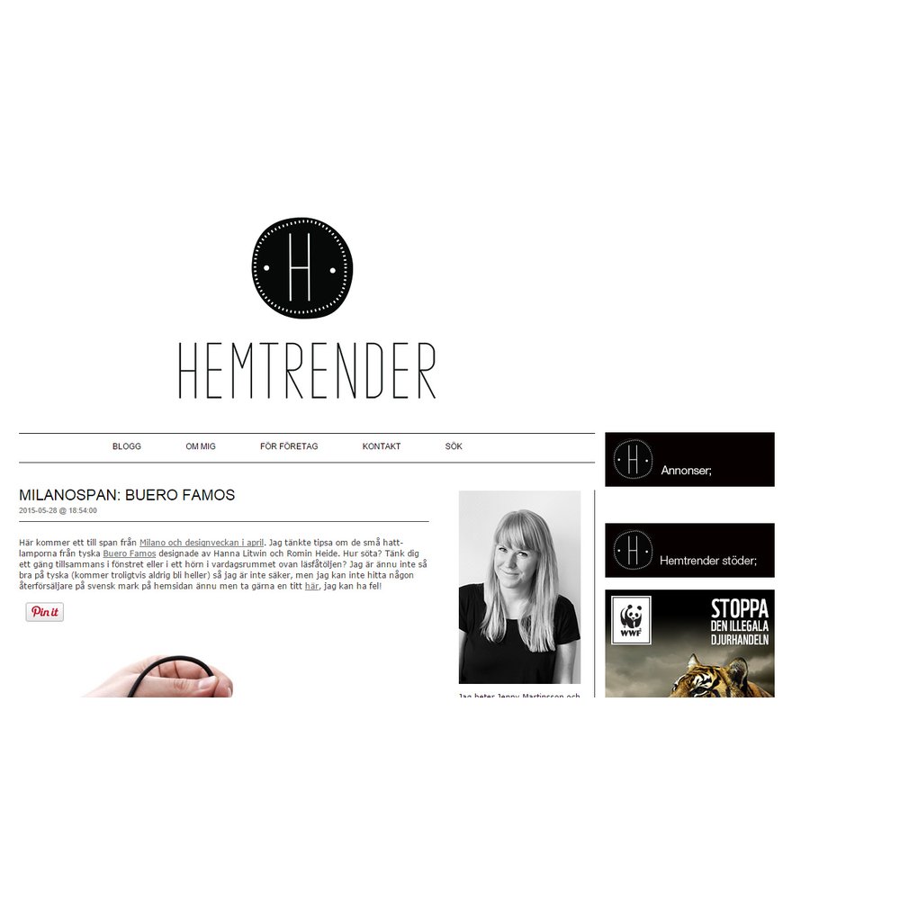Jenny Martinsson har haft bloggen Hemtrender i 7 år som sedan dess har varit fylld till bredden med inredningsinspiraton, mode, presenttips, idéer och snygga bilder. Hemtrender fokuserar mest på design och inredning i neutrala färgskalor samt svart, vitt och grått med gröna växter som livar upp. Man finner dock även vackra foton från Jennys vardag och tips på t.ex. hur man gör sin egen hemmagjorda scrub. Hemtrender är väl värd sin plats på listan!