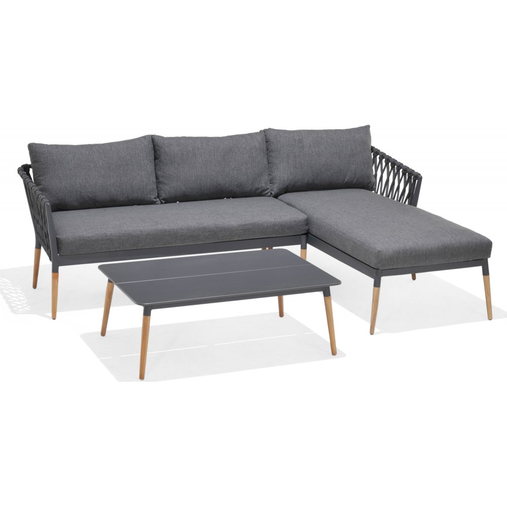 Ipanema är en stilfull och rymlig loungegrupp som kombinerar modern design med genomtänkta materialval. Setet består av en divansoffa med generös bredd samt ett matchande soffbord. Den eleganta grå färgsättningen, tillsammans med de mjuka dynorna, skapar en inbjudande miljö för avkoppling på uteplatsen, i uterummet eller på altanen.