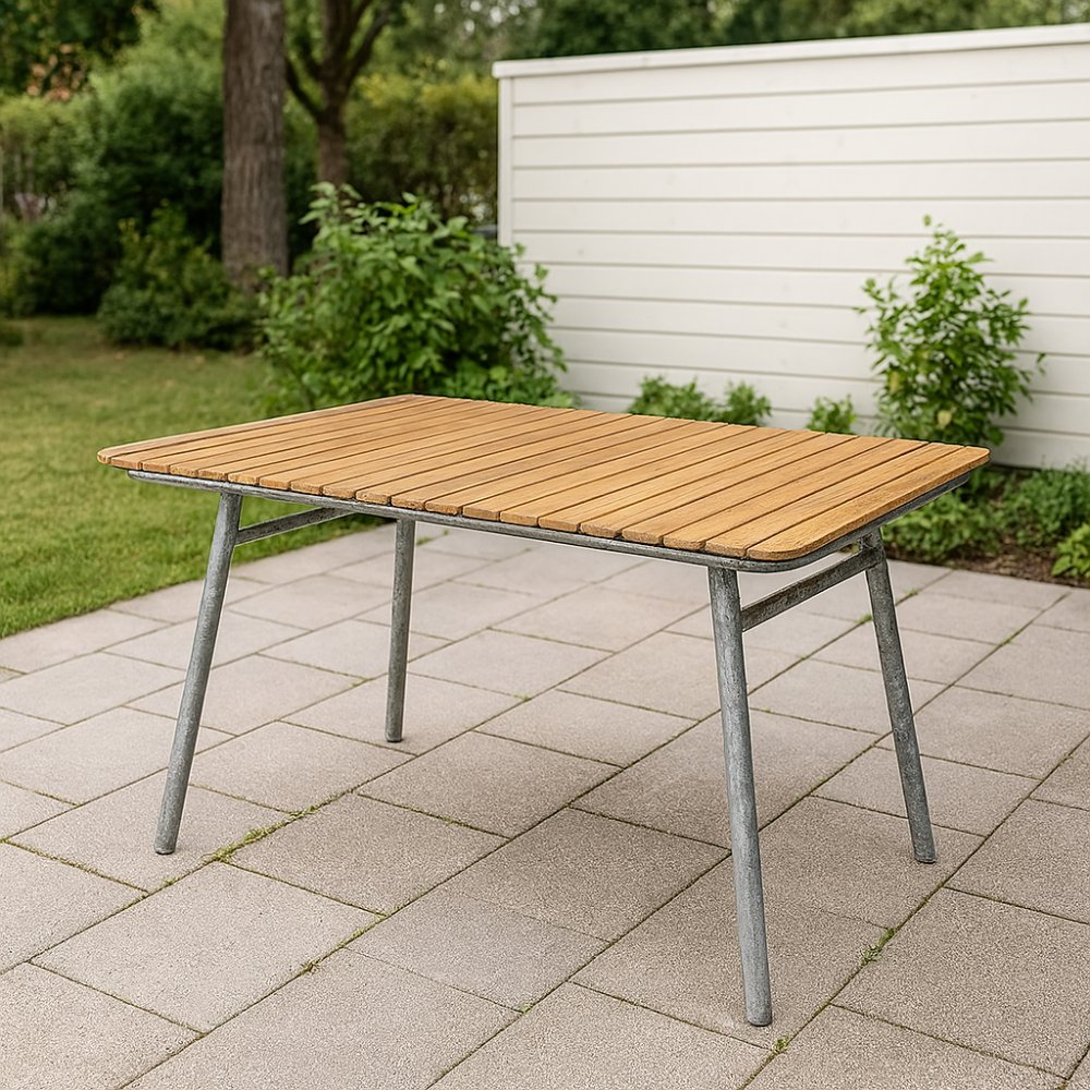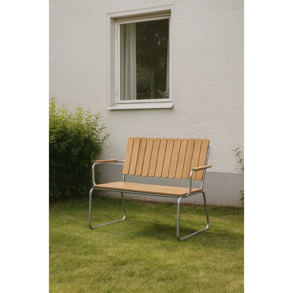 Möllan är en exklusiv serie i skandinavisk klassisk design. Utegruppen är tillverkad i galvaniserat stål med massivt oljat teakträ. Detta gör utegruppen väderbeständig och tålig för att klara uteplatsens miljö.