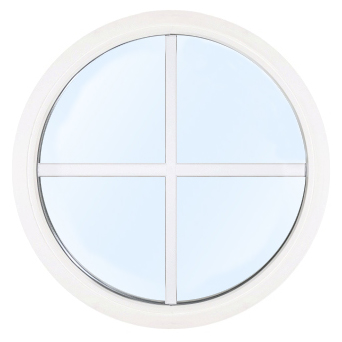 Runt fast fönster med 3-glas isolerruta, energiglas och argongas. Glaset är i utförande klarglas. Karmdjupet är 68 mm. Fönstret är målat i Vit NCS S0502-Y (med andra färger som tillval). U-värde: 1.1.